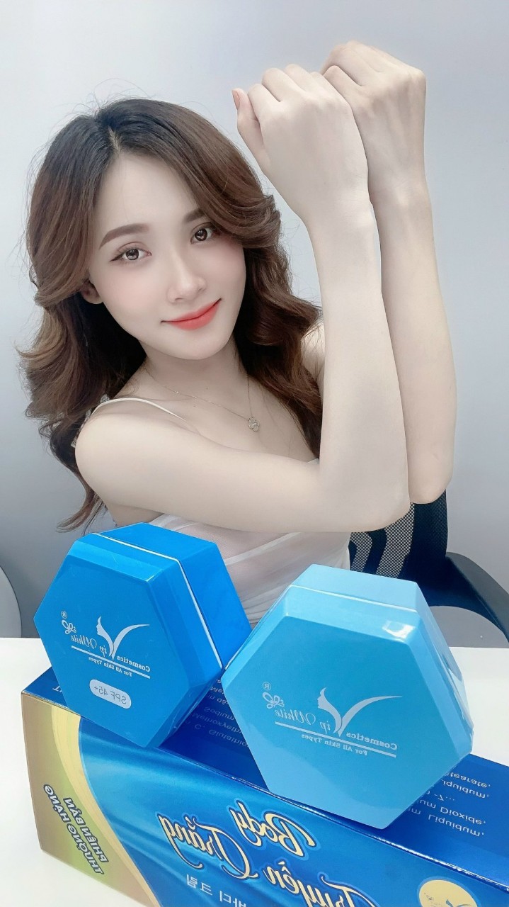 Sử dụng kem body kích trắng mạnh (xanh đậm) vào ban ngày vì trong kem có chống nắng spf45+