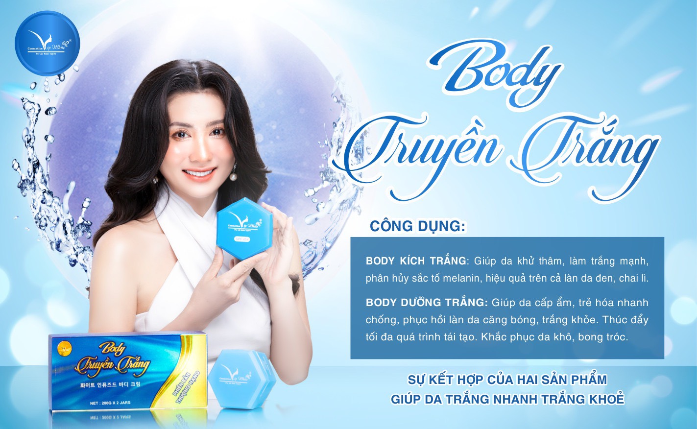 - Body dưỡng trắng giúp da cấp ẩm, trẻ hóa nhanh chóng, trắng khỏe.