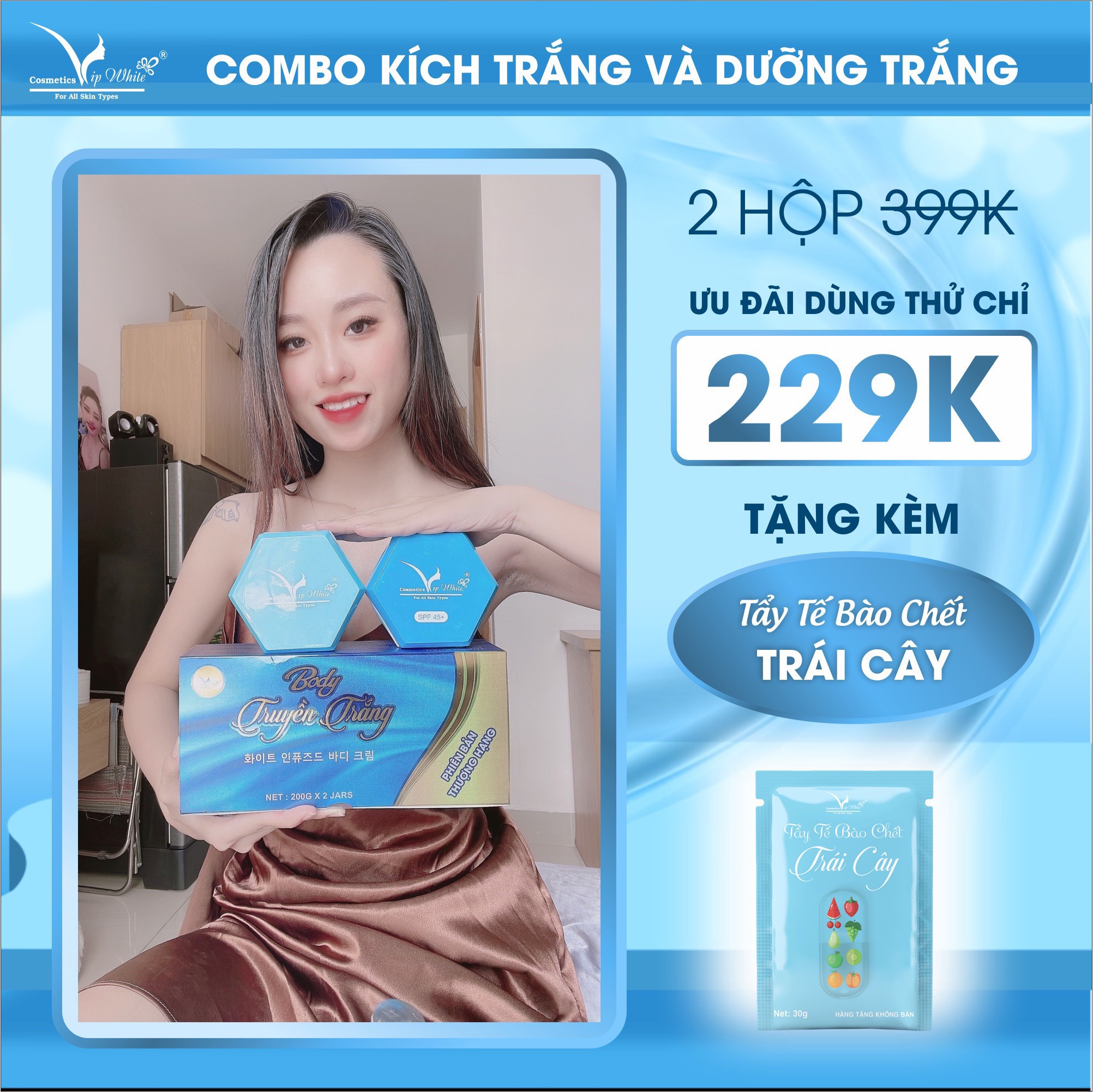 - Sài nhiều kem body vẫn k trắng nổi…ít nhiều những vấn đề này đã ngốn cả triệu một tháng mà vẫn không có hiệu quả thì hãy thử ngay Combo truyền trắng nhà Vip White