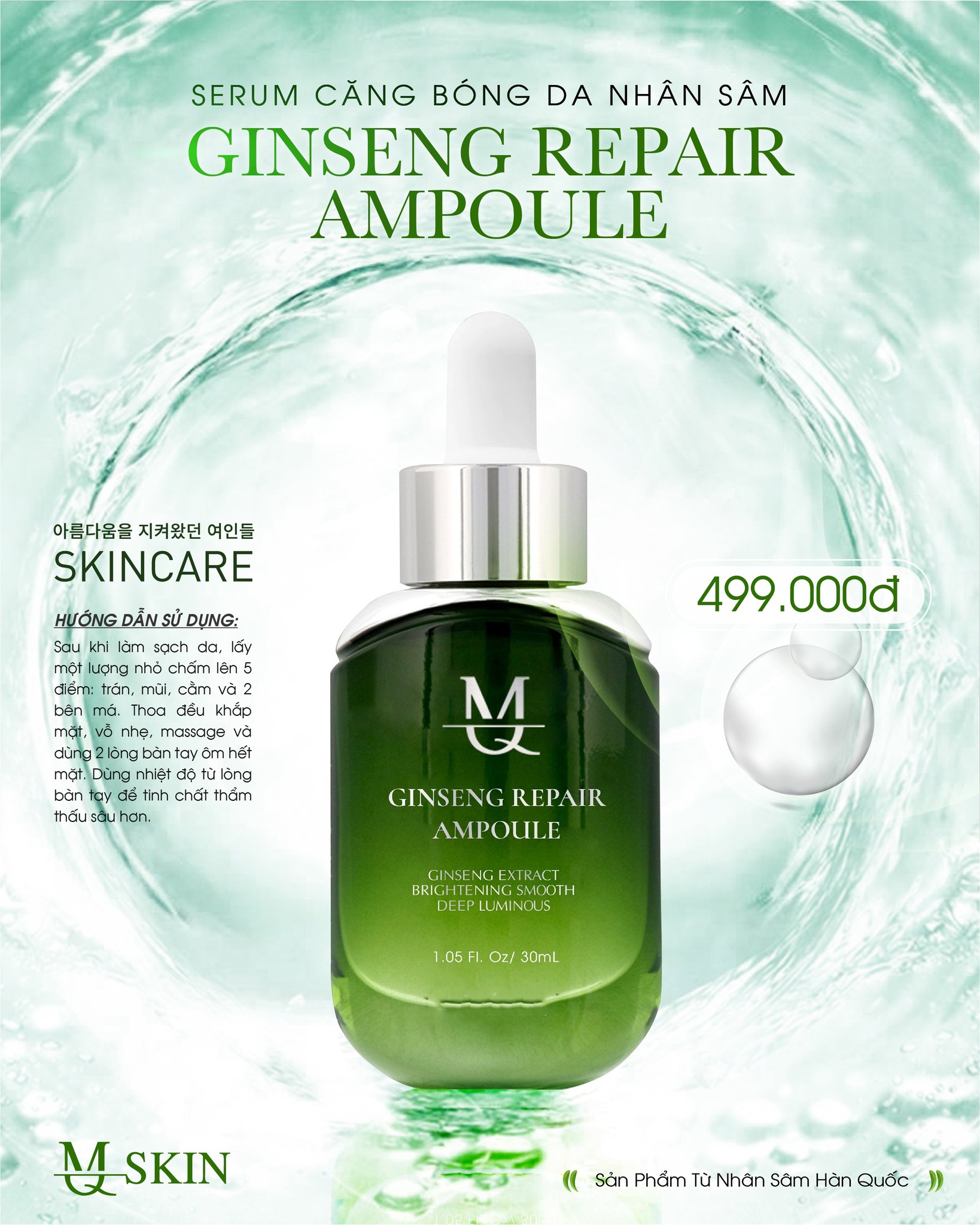 Serum căng bóng nhân sâm mq skin - phương pháp đơn giản và nhanh chóng nhất, giá thành hợp lý lại mang lại những hiệu quả bất ngờ.