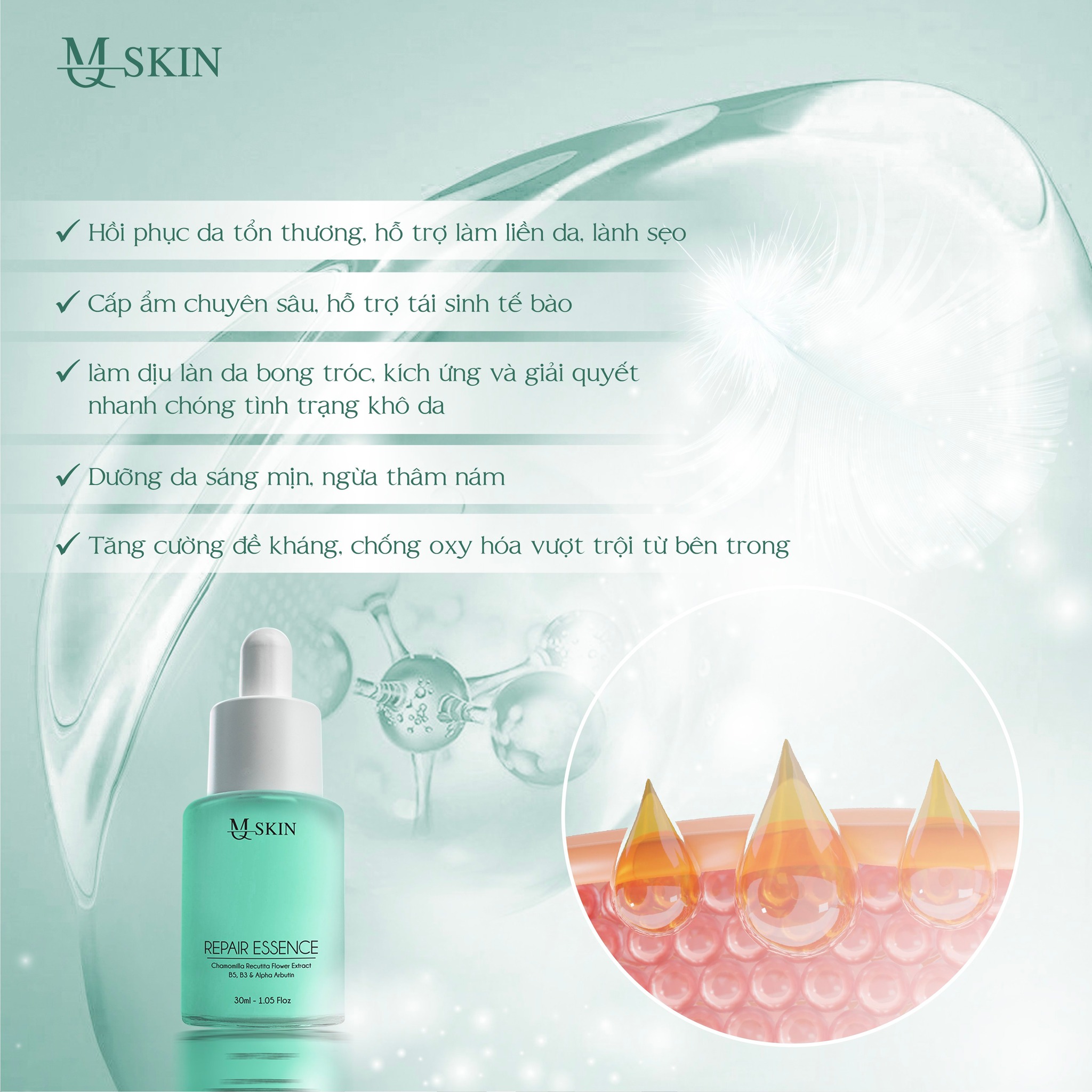 Hiệu quả "độc quyền" của SERUM PHỤC HỒI KHÁNG VIÊM MQ SKIN chính là thành quả nghiên cứu tích hợp "bộ tứ sức mạnh phục hồi cấp tế bào"